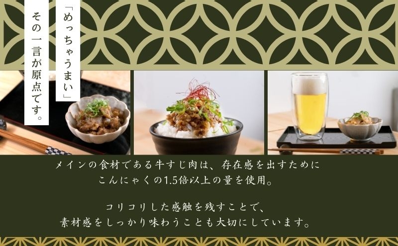 | 容量 | 【内容量】600g(150g×4パック) 【原材料名(原産地)】牛すじ肉(和牛/東京都製造)、蒟蒻(群馬県産)、糀味噌(長野県製造)、粗精糖(鹿児島県産)、生姜(高知県産)、大蒜(青森県産)、黒胡椒(マレーシア産) |
