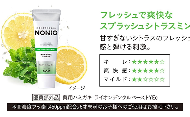 NONIOハミガキ スプラッシュシトラスミント 130g (12本) ハミガキ 歯磨き 薬用歯磨き はみがき 歯 NONIO ノニオ 口臭 口臭予防 口臭ケア 口臭対策 口腔 口腔ケア 日用品 兵庫 兵庫県 明石 明石市