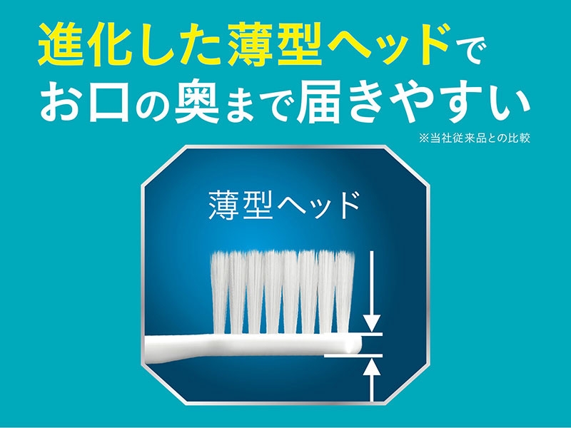 お口の奥の歯周ポケットまで届きやすい薄型ヘッド。