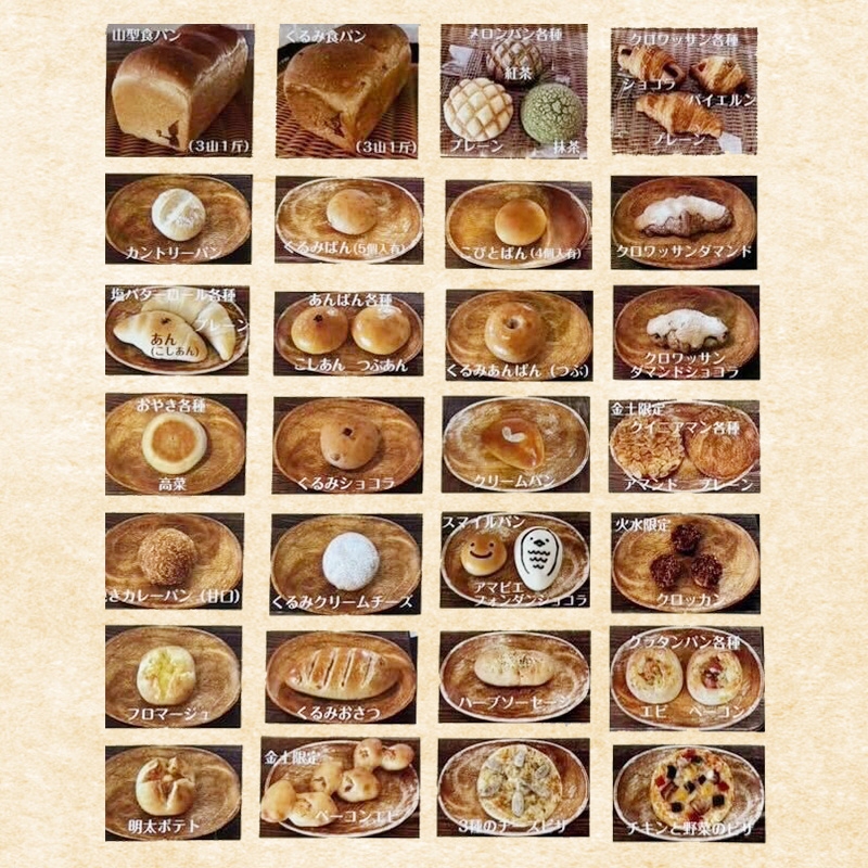 | 容量 | 【おすすめパン16~25個入り】以下から選別してお送りします。パンの種類は選べません。 食パン1斤、食パンハーフ、くるみ食パン1斤、くるみ食パンハーフ、メロンパン、抹茶メロンパン、紅茶メロンパン、クロワッサン、クロワッサンショコラ、クロワッサンバイエルン、クロワッサンダマンド、クロワッサンダマンドショコラ、カントリーパン、くるみぱん、こびとぱん、塩バターロール、あん塩バターロール、こしあんぱん、粒あんぱん、くるみあんぱん、高菜のおやき、くるみショコラ、クリームパン、クイニアマン、アマンドクイニアマン、焼きカレーパン、くるみクリームチーズ、スマイルパン、アマビエフォンダンショコラ、クロッカン、フロマージュ、くるみおさつ、ハーブソーセージパン、グラタンパン(エビ)、グラタンパン(ベーコン)、明太ポテト、ベーコンエピ、3種のチーズピザ、チキンと野菜のピザ、苺メロンパン、塩レモンメロンパン、くるみるく、パン・チーズフォンデュ、マロンパイ、おにぎりパン、おばけフォンダンショコラ、クリスマスフォンダンショコラ、栗あんぱん、カレーのおやき、パンプキンデニッシュ、シュトーレン(スライス)、魔女の杖、かぼちゃあんぱん、チョコチップメロンパン(54品目) |