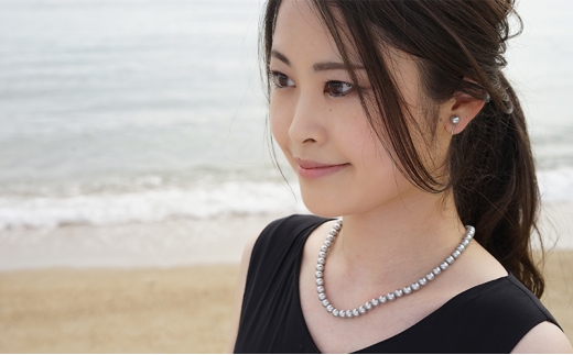 島珠 ネックレス・イヤリングセット 7mm グレー 兵庫県 洲本市 淡路島 [№5395-0351]