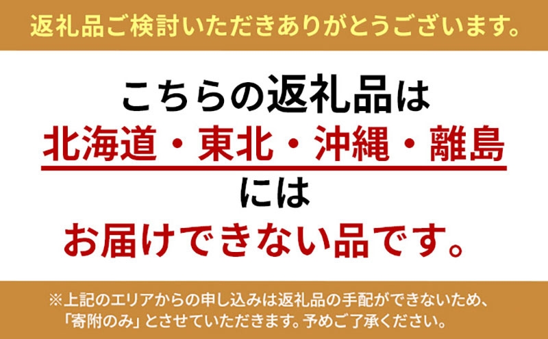 ※上記のエリアからの申し込みは返礼品の手配が出来ないため「寄附のみ」とさせていただきます。予めご了承ください。