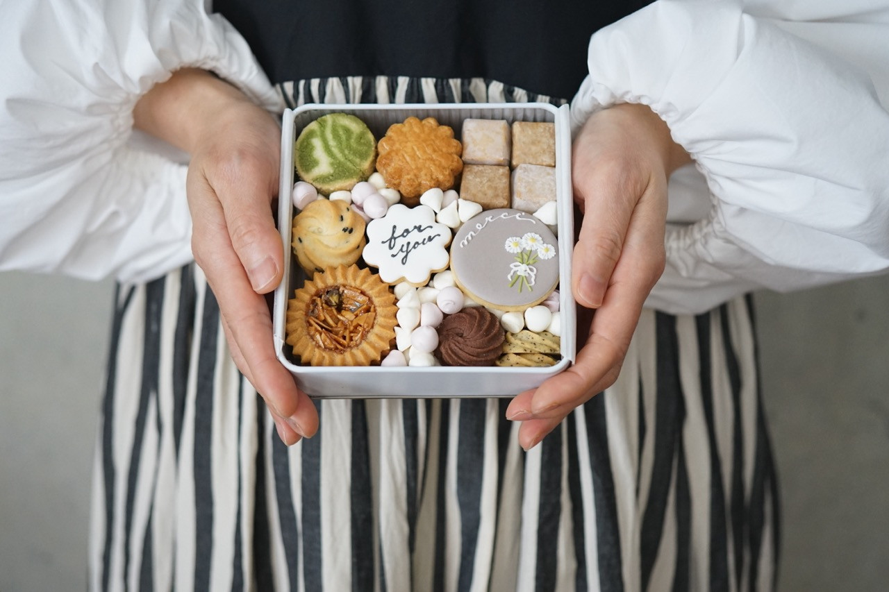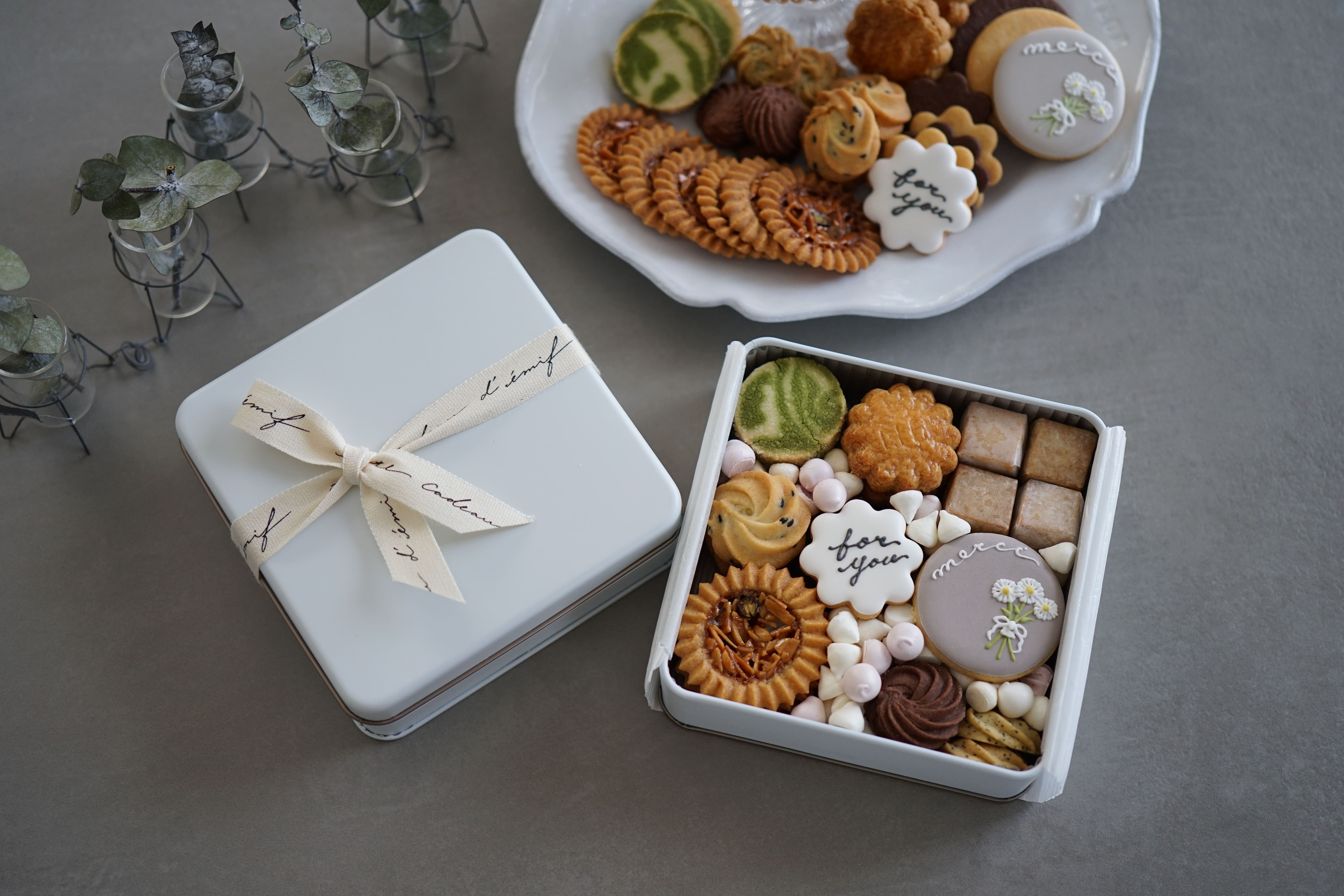 | 容量 | ロミアスクッキー6枚、米粉サブレ宇治抹茶バニラ3枚、ガレットブルトンヌ3枚、ヴィエノワ(黒ごま3枚、アールグレイ2枚、カカオローズマリー3枚)、ブールドネージュプレーン4枚、ブールドネージュ珈琲4枚、紅白メレンゲ(木苺、ココナッツ)季節ごとでフレーバー変更になる可能性あり、アイシングクッキー2枚、プレーン&カカオクッキー各4枚 内容量160g 缶入り |