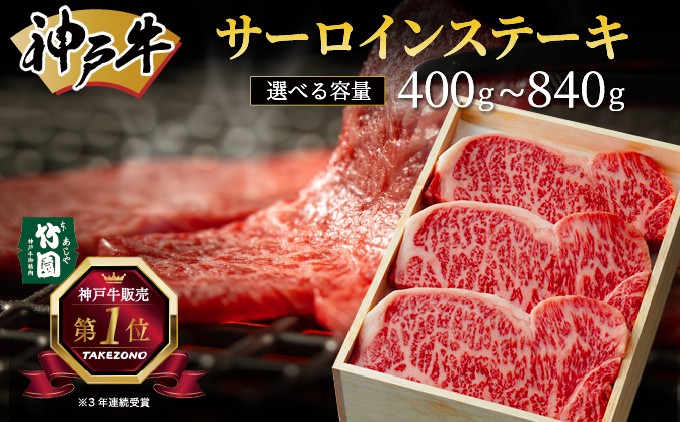 全てにこだわった「あしや竹園」のお肉 <選べる容量> 神戸牛 サーロイン ステーキ 400g〜840g【あしや竹園】 牛肉 黒毛和牛 肉 お肉 サーロインステーキ ステーキ 霜降り 国産 BBQ ギフト 贈答用 芦屋 芦屋市 兵庫 贈答 054-a018 054-a022 054-a026 054-a027