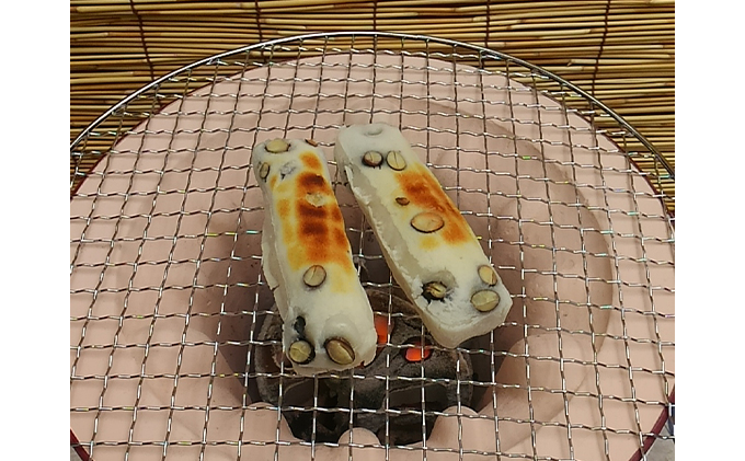 うるう餅:佐賀県産ひよくもち米と新潟県産コシヒカリ(うるち米)を合わせてついて、米粒の食感を残しています。とても歯切れのよいお餅になっており、たがね餅とも言われます。