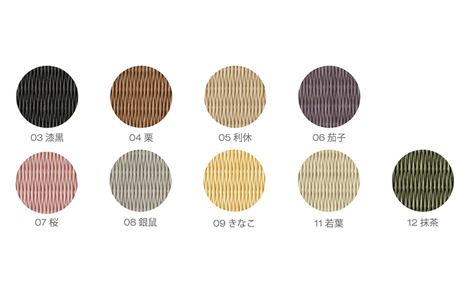 | 容量 | ・コースター5枚 【素材】樹脂畳表 【カラー】漆黒、栗、利休、茄子、桜、銀鼠、きなこ、若葉、抹茶 ※色の種類をお選びください。 ※コースター5枚全て同じ色となります。 ※異なる色はお選びいただけません。 |