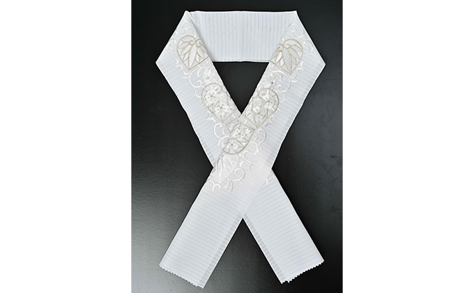 白地塩瀬生地に銀糸と白糸のみを使用した刺繍です。