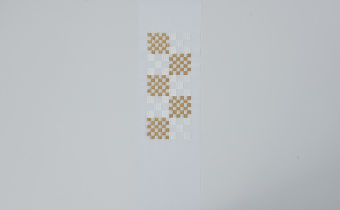 白地に白とゴールドの糸での市松柄の刺繍をした半衿です。