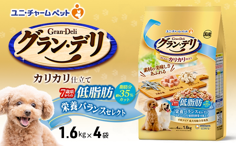 グラン・デリ カリカリ仕立て 7歳頃からの低脂肪 栄養バランスセレクト~脂肪分約35%カット~ 1.6kg×4袋 ペットフード ドッグフード 犬のごはん 犬用フード 犬 ペット ドライ ユニ・チャーム ペット ユニ・ケアー [№5275-0452]