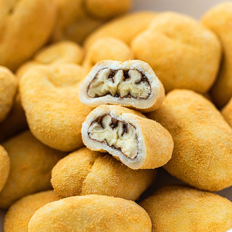 芳醇な香ばしさを持つ飴掛けのピーカンナッツを、まろやかなホワイトチョコレートでコーティング。