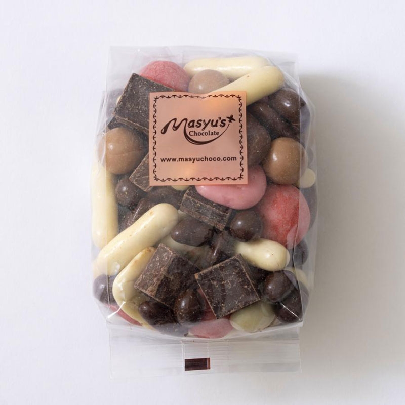 一つの袋にいろんな種類のチョコレート商品が入ってます! アーモンドチョコ、フリーズドライ苺チョコ、ビスケットチョコ、バナナチップチョコなどなど。 約15種類のチョコレート菓子が入っています。 ※賞味期限は冷蔵で製造から240日です。 ※沖縄県、離島へのお届けはできません。 ※こちらの返礼品は4月~10月に発送します。 ※画像はイメージです。袋内に含まれるチョコレートの種類は選べません。