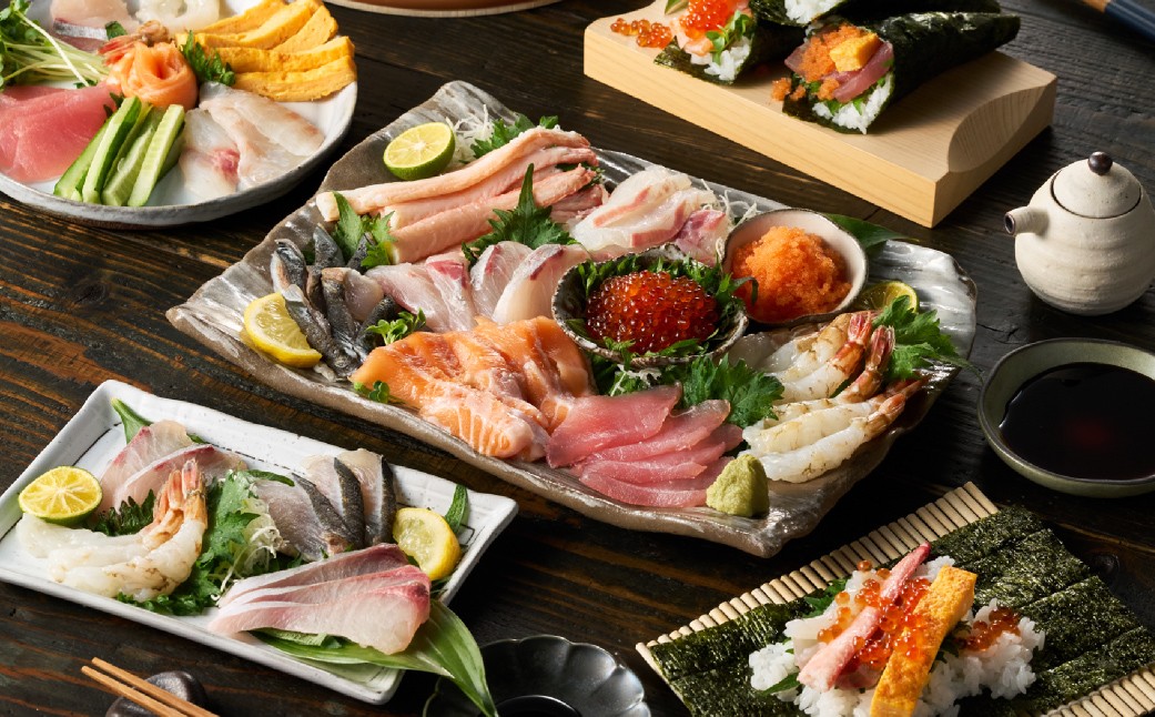 季節に応じた魚介を手巻き寿司用の切り身にカットしてお届けします。