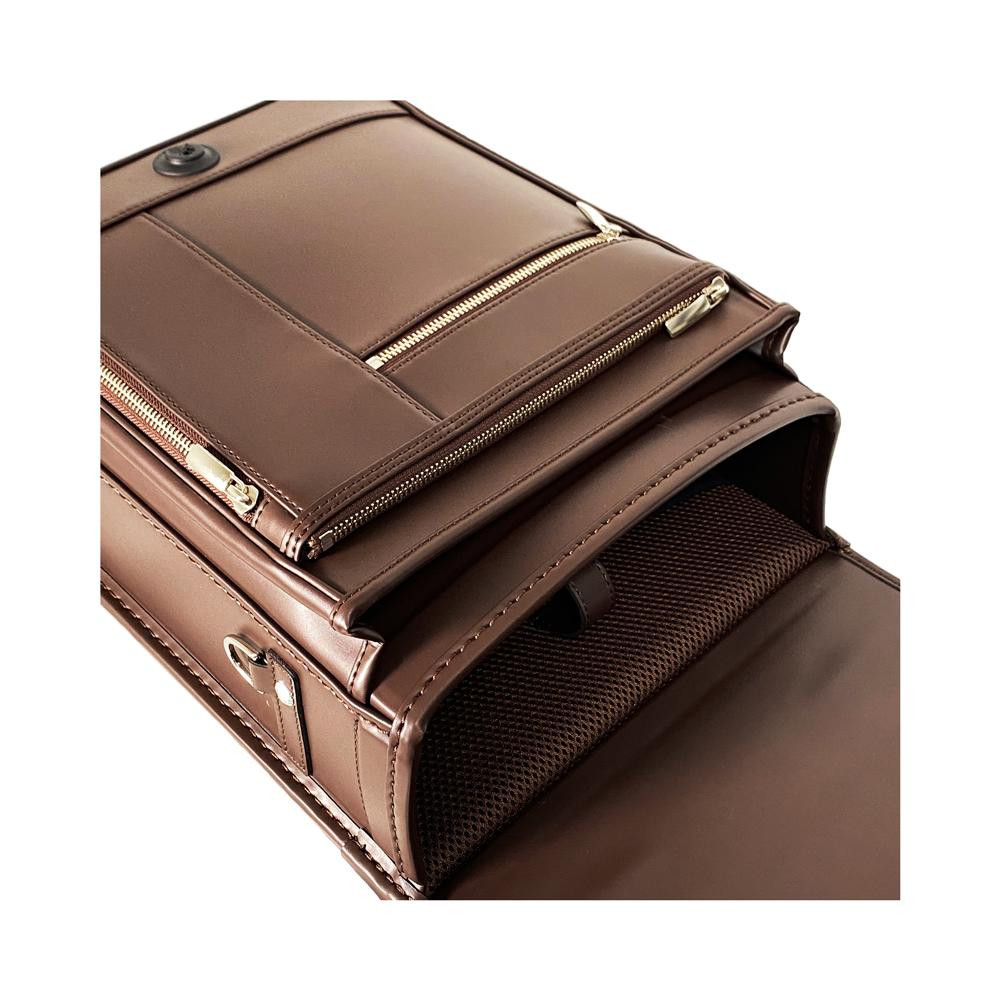 この商品は兵庫県鞄工業組合が取得した商標登録「豊岡鞄」です。すっきりとした縦長のフォルムは、スマートな印象を演出し、ビジネスからカジュアル使いまで幅広い場面で活躍します。ランドセルと同じ素材を使用しており高強度・耐久性に優れています。