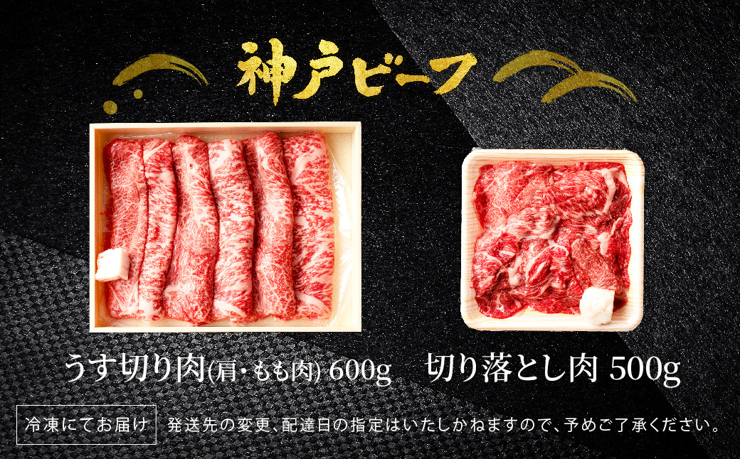 神戸牛 うす切り・切り落とし肉 合計1.1kg 【肩・もも肉 600g+…