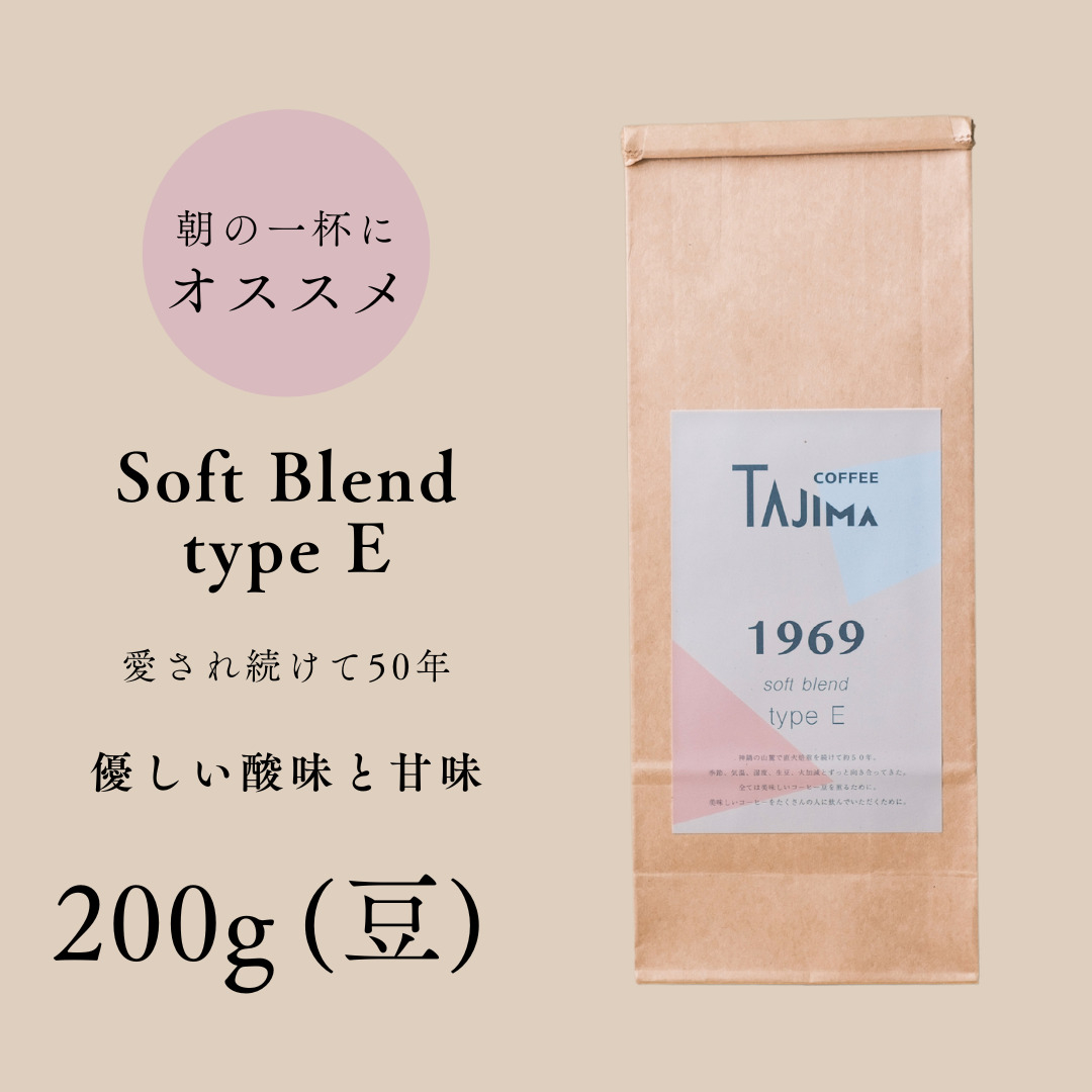この自治体のポイントについてチョイス公式ポイント交換対象 焙煎一筋50年 細部に宿る熟練焙煎士のこだわり コーヒー豆 豆のまま / soft blend type E 珈琲豆 お試し 200g 自家焙煎 珈琲 豆 コーヒー 珈琲 老舗 喫茶店の味 優しい酸味と甘み 軽やかな口当たり 朝の一杯 但馬東洋珈琲【tc-sb-type-e-200】【TAJIMA COFFEE 】