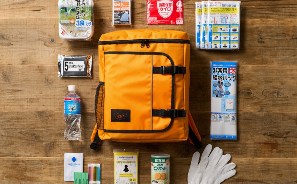 日本製、豊岡産のリュックサックに詰める!リーベン防災56点セット(2人用)