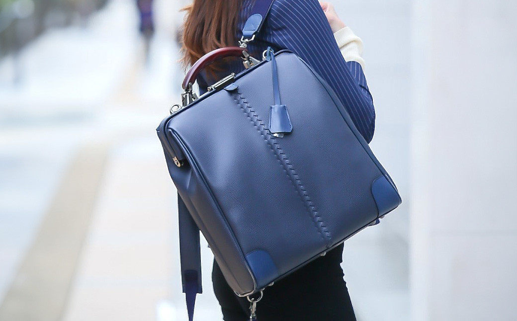 クラシックスタイルの定番型であるダレスバッグをブラッシュアップして、軽量化と移動の利便性を追求し、リュック機能を加えました。また、ハンドルは、贅沢に欅(ケヤキ)を使用し、上品な質感と高級感のあるデザインに仕上げました。