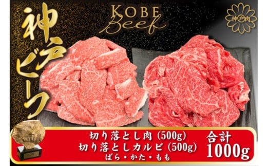 神戸牛 切り落とし肉 1kg【バラ・肩・モモ】(切り落とし500g …