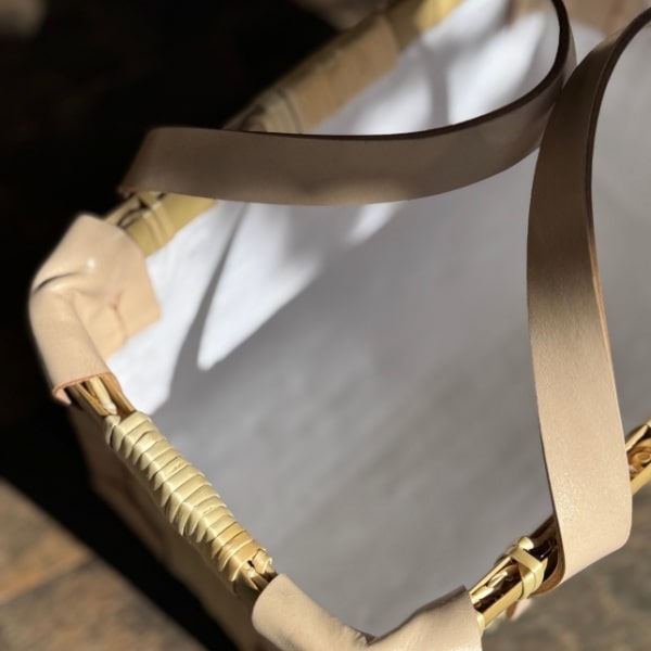 柳が持つ防湿性を生かしつつ、かごバッグ特有の内布の古臭さを排除しました。
