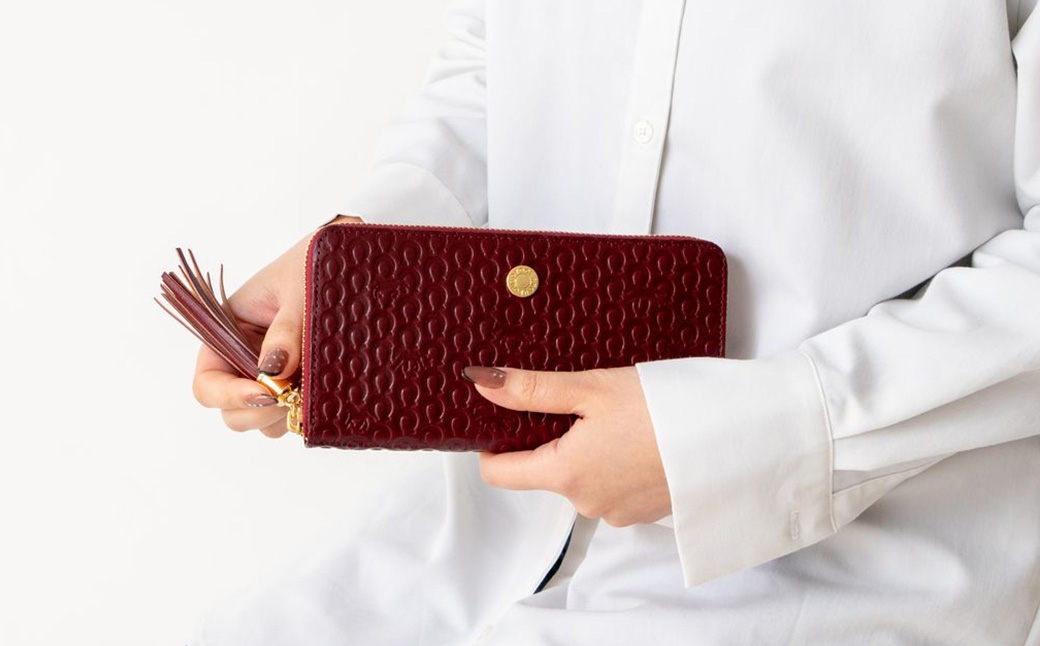 | 容量 | サイズ:W19.5×H10×D2cm 素材:イタリア製牛革 重量:約210g color:黒、グリーン、ワイン 開閉ラウンドファスナー式、内札入れ×2、 カード入れ×12、ファスナー式小銭入れ(内側4室)×1、 オープンポケット×2、タッセル付き |