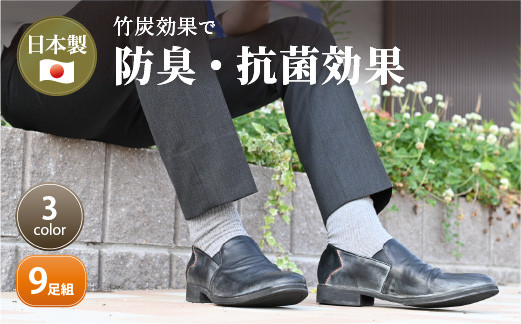 竹紀行カジュアルソックス(3色9足)《 防臭 抗菌 保温 ブラック …