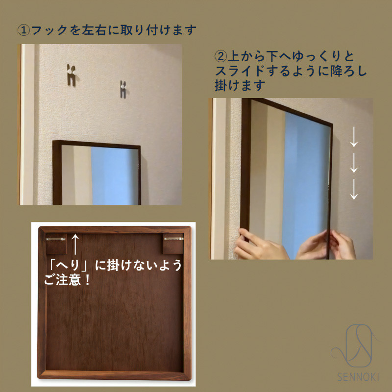 《SENNOKI CARREシリーズ》 加古川の流れを利用した上流からの木材運搬で栄えた加古川市の木工品。 使う人とともに、経年を楽しむ木の文化をかたちにしました。 四大銘木のひとつであるホワイトアッシュを使用。 暮らしを豊かにする、カジュアル・ヴィンテージのインテリアミラーです。 市内の自社工場で企画・製造・梱包までを一貫生産。 ご注文を受けてから製造を開始するセミオーダーで、おひとりおひとりの寄附者様のためにお作りして、出来立ての商品をお届けします。 一品一品まごころ込めて製造した商品です。 木枠は3色からお選びいただけます。 ・ナチュラル ・ライトブラウン ・ダークブラウン ◆返礼品お届けについて◆ 12月ご申請の方は、お届けまでに2か月程かかる場合がございます。予めご了承ください。 ※画像はイメージです。 【商品詳細】 ●商品全形サイズ:幅80cm×高さ80cm×奥行2cm ●ミラーサイズ:幅75cm×高さ75cm ●ミラー厚み:5mm(飛散防止効果有り) ●材質:天然木ホワイトアッシュ材 ●商品重量:約7.6kg 【注意事項】 ※商品の梱包は厳重にしておりますが、商品到着時には必ず開梱し、 打痕・鏡の割れ等がないかご確認ください。 ※到着から1週間過ぎますと、お取替えできない場合があります。 ※沖縄・離島など、一部地域にはお送りできません。 【地場産品類型】 3 【類型該当理由】 市内の工場にて、製材・研磨・塗装・組み立て等、製品化に至るまでの大半の工程を行っているから