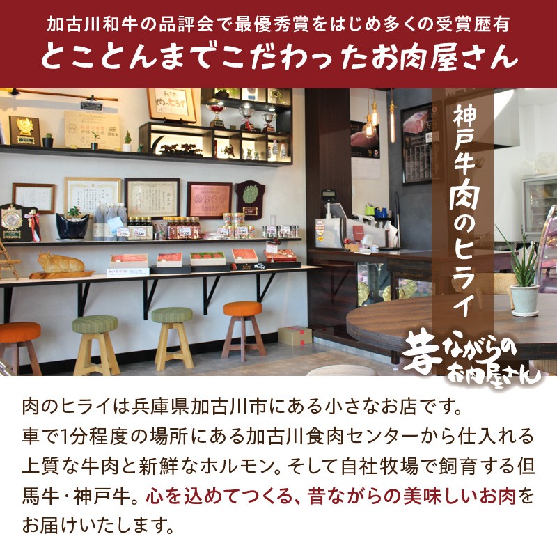車で1分程度の場所にある加古川食肉センターから仕入れる上質な牛肉と新鮮なホルモン。
