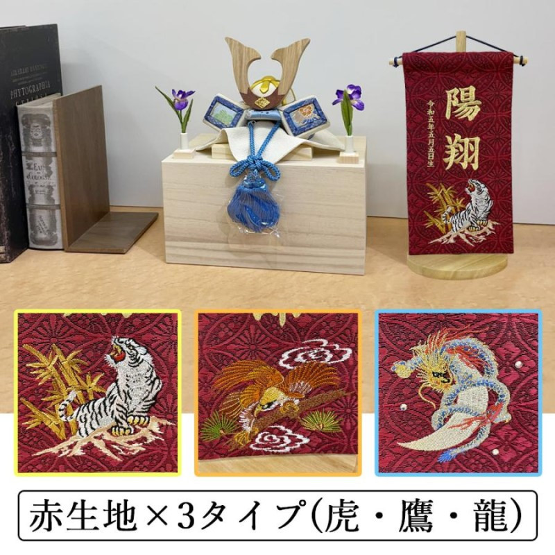 お祝い 刺しゅう入り 名前 贈り物 名前旗 正月 五月人形 七五三 【金襴刺繍入り】五月人形用 名前旗 (コンパクト) 鷹・竜・虎《お祝い 刺しゅう入り 名前札 贈り物 名前旗 正月 五月人形 七五三》 【2404M03907】