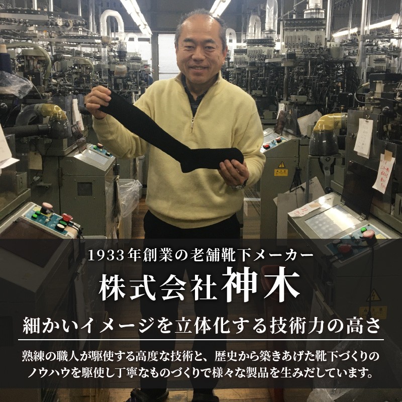 創業から100年近い歴史を持つ神木では、素材選びから編み上げまで一貫した国内生産を行っており、高い技術力でトップブランドや大手メーカーなど品質に厳しい顧客からのオーダーに応えるものづくりを行っています。