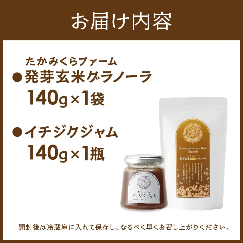 | 容量 | ●発芽玄米グラノーラ:140g×1 ●イチジクジャム:140g×1 |