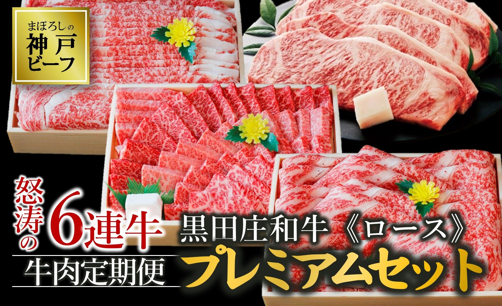 【冷蔵・年6回お届け定期便】 特選 黒田庄和牛ロースプレミアムセット(焼肉・すき焼き・しゃぶしゃぶ・ステーキから選べます!) (300-2)神戸牛 神戸ビーフ 定期便 黒田庄和牛 黒毛和牛 高級黒毛和牛 但馬牛 黒田庄 ごちそう 満足 プレミアム 高級 焼き肉 焼肉 すき焼き しゃぶしゃぶ BBQ ステーキ 贅沢