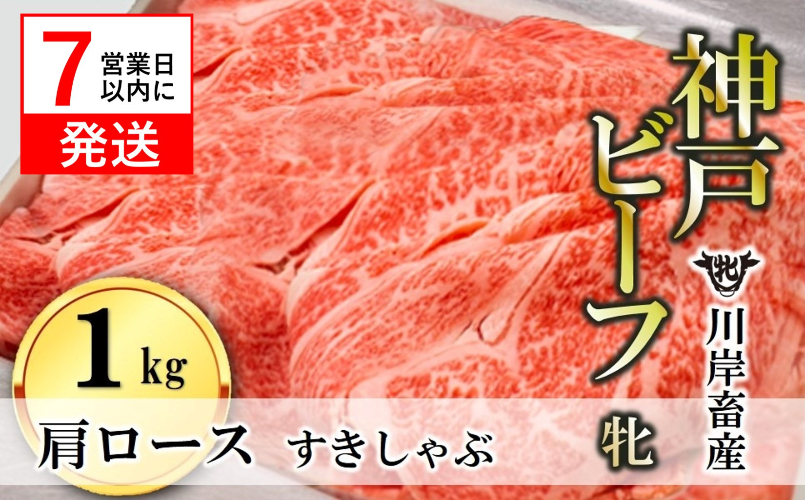 去勢牛よりも格段に肉質の良い「牝牛」のみを大切に育てた「神戸ビーフ」 【神戸牛 牝】【7営業日以内発送】肩ロースすき焼き・しゃぶしゃぶ用:1kg 川岸畜産 (66-4)
