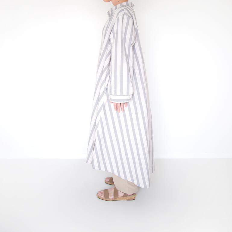 52-4 播州織shuttle ストライプ オーバーワンピース(グレー)