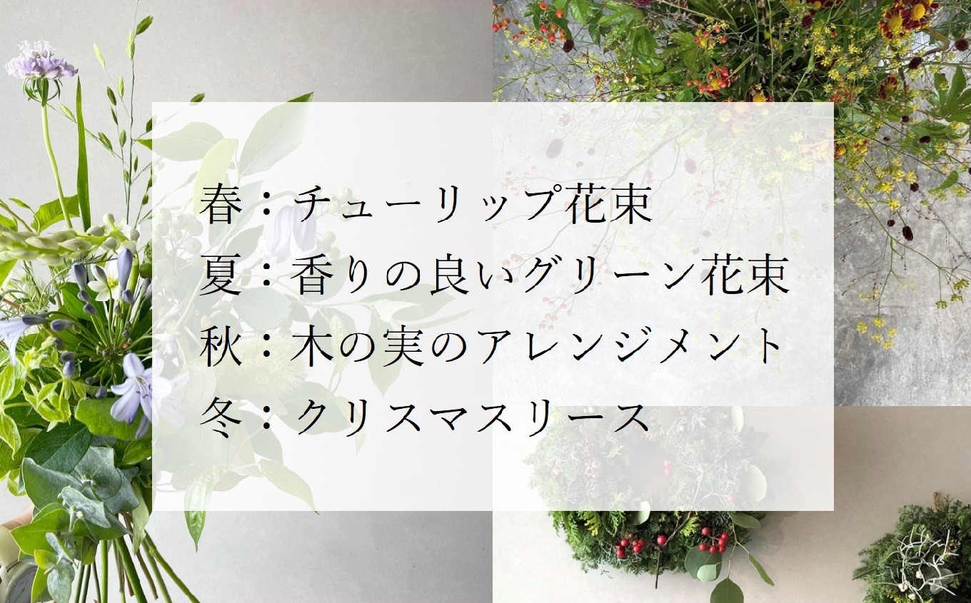 季節のお花で、ほっと、すーっとすきとおる優しい時間を提供します。 【年4回お花をお届け】四季をいつくしむ定期便 春夏秋冬 (84-4)