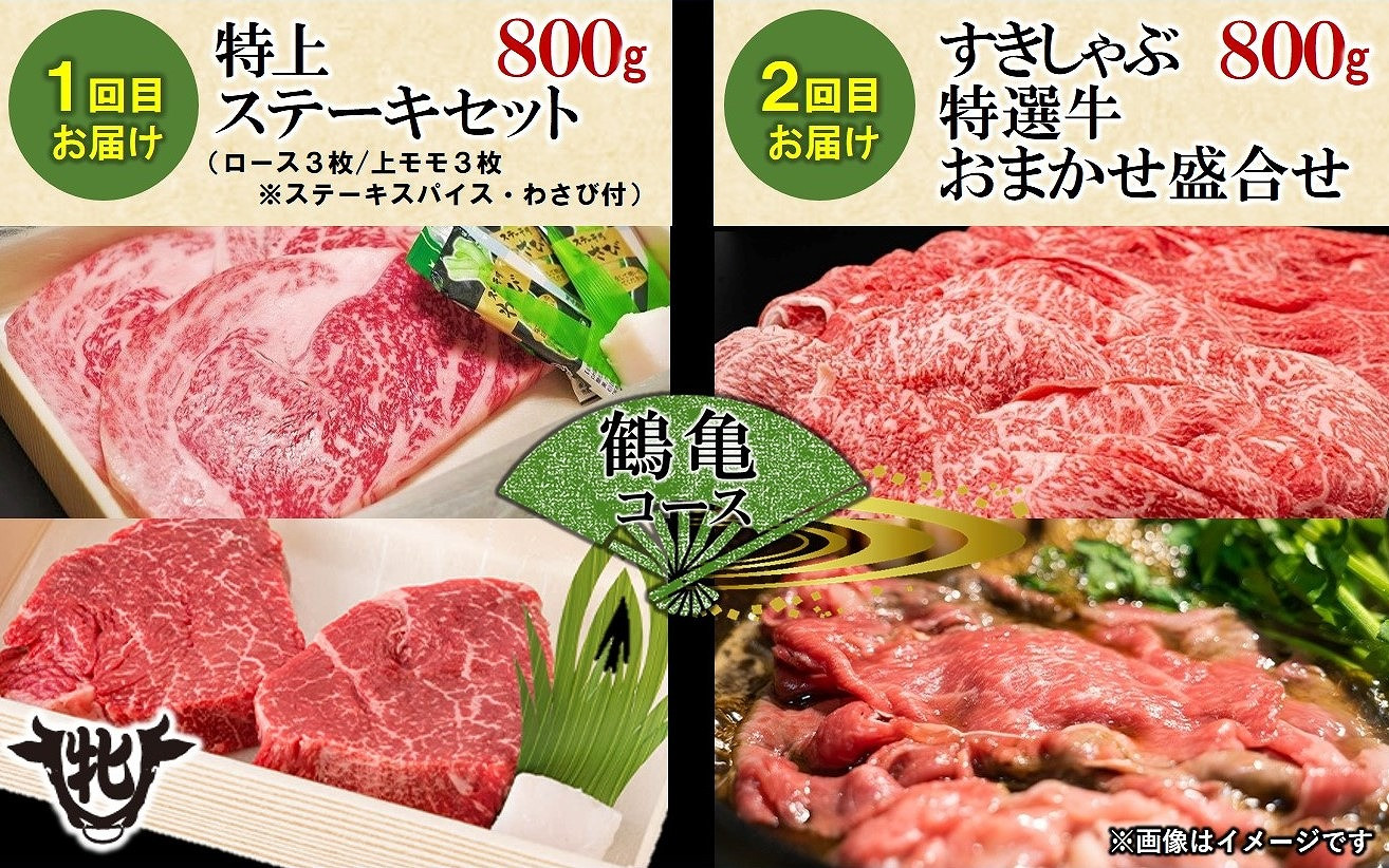 去勢牛よりも格段に肉質の良い「牝牛」のみを大切に育てた「神戸ビーフ」 【神戸牛 牝 定期便】2回に分けてお届け神戸ビーフ〈鶴亀〉定期便コース(合計1,600g)(125-4)