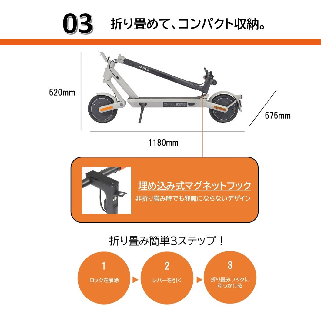 YADEA製品の電動キックボードでは軽量モデルで、さらに持ち運びやすいモデルです。