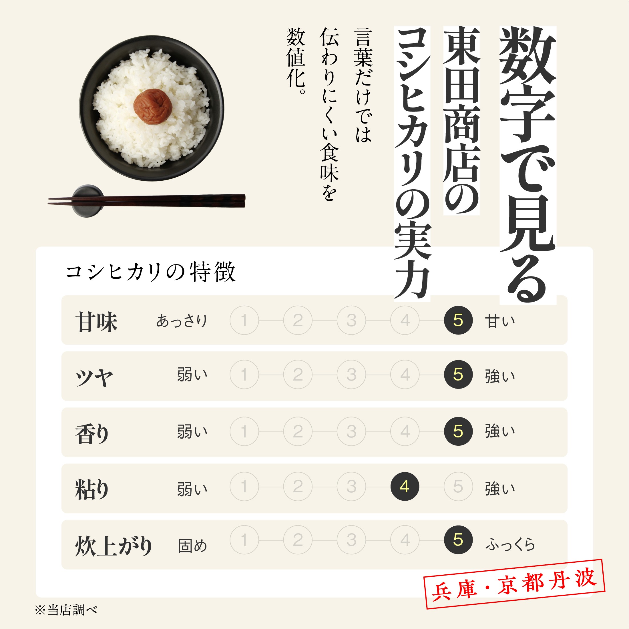 培ってきた知識で仕入れる兵庫県産コシヒカリは、評判も高い逸品。