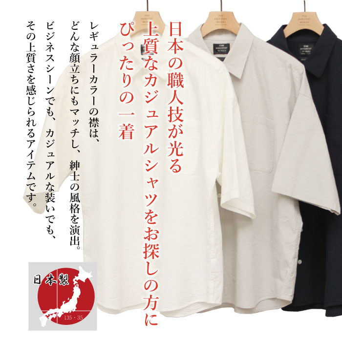 播州織メンズシャツ「THE INDUSTRY WORKS」(半袖バンドカラー…