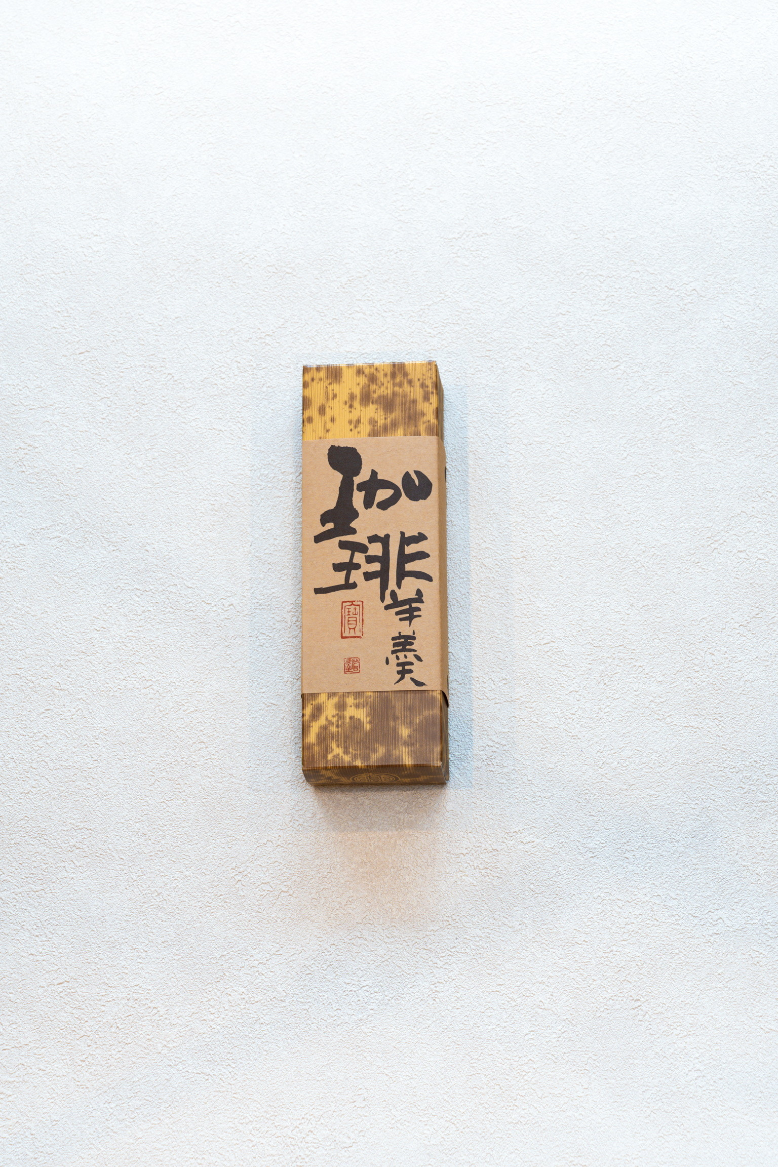 甘みが最も増す中深煎りに焙煎したコーヒー豆、国産の糸寒天、純度の高いザラメ糖、北海道産の大雪手亡豆で作り上げた逸品。