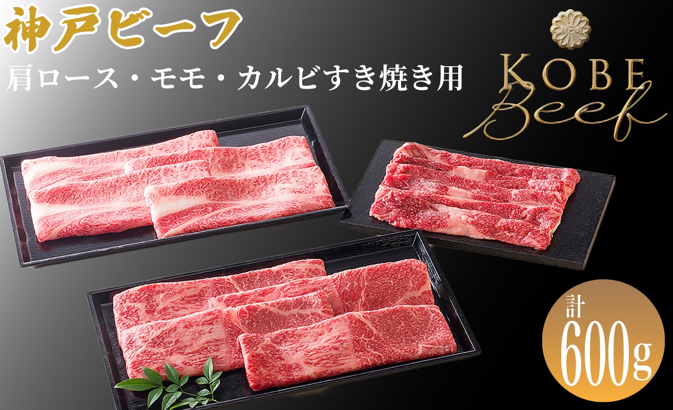 きめ細やかな脂と、赤身を堪能できるすき焼き用 神戸ビーフ 肩ロース・モモ・カルビすき焼き用 計600g[髙島屋選定品]65A0101