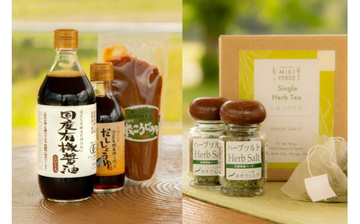 【三木市×多可町】ハーブセットと国産有機醤油、だししょうゆ、…