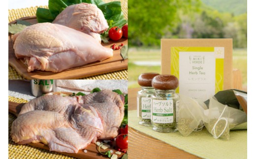 【三木市×多可町】ハーブセットと播州百日どり 冷凍もも肉・む…
