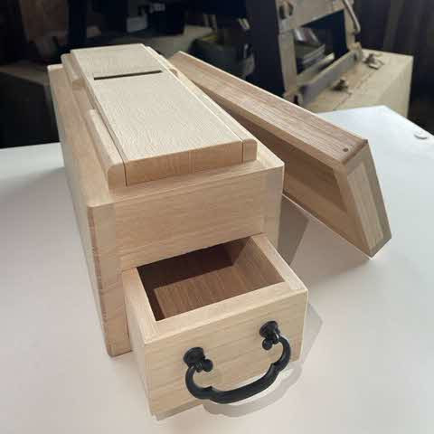 箱は桐を使い、古風な引き出し付きの狂いの無い、衛生的な箱にしております。