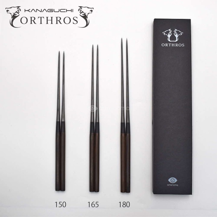 漆黒の盛付用箸 オルトロスブラック 16558,000 円 マットな黒染刃が渋い。高級天然木『黒檀』六角柄盛箸『ORTHROS』です。 『ステンレス黒染』は酸化皮膜で皮膜が剥がれ落ちるこことがなく、人体にも影響がない安全な技術で箸先を染色。本焼仕上げで丈夫な刃に仕上げました。 天然木黒檀柄を六角形状に。手の中でフィットして持ち易く、厨房で転がり落ちる事を防ぎます。箸先は指先でコントロールし易い先細形状になっています。 オルストロスは(株)金口製作所×amenomaのコラボ商品です。 盛箸とは料理を盛り付ける際に用いられる箸です。刺身などの和食の盛り付け・飾りつけ用として繊細な作業に大活躍します。 - 別送