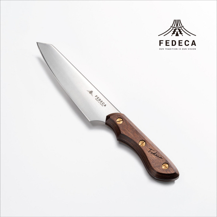 アウトドアもキッチンもこれ一つ!メンテナンスも簡単、切れ味抜群の三徳包丁 【FEDECA】三徳包丁 小 プレーンブラウン 000986