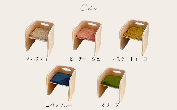・専用のチェアパッドはミルクティー、コペンブルー、マスタードイエロー、オリーブグリーン、ピーチベージュからお選びいただけます。