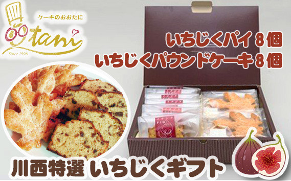 【川西の特産が詰まったお菓子セット!】 ・川西特産いちじくをふんだんに使ったお菓子の詰め合わせセットです。 ・いちじくパウンドケーキはテレビや雑誌でも取り上げられた人気商品です。 ・つぶつぶ食感が楽しいパウンドケーキです ・いちじくパイは兵庫県の<五つ星ひょうご>に認定されています ・お土産やギフトとしても最適 川西名産ケーキのおおたに(072-758-1858)