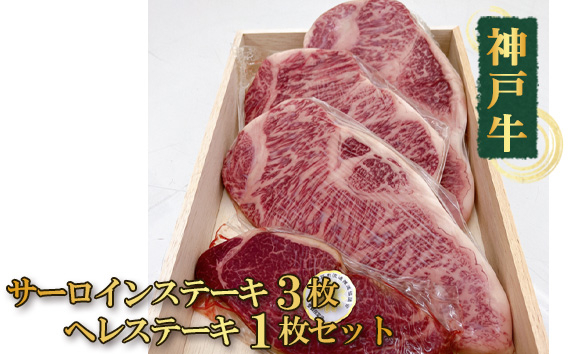 No.372 神戸牛サーロインステーキ3枚ヘレステーキ1枚セット