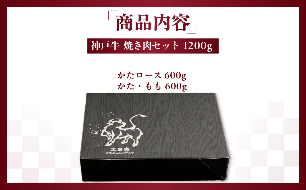 神戸牛(神戸ビーフ) 焼肉セット 計1200g KNYS5 KWNCJ010 ふるさと納税 神戸牛 神戸ビーフ ブランド和牛 国産 和牛 焼肉 かたロース かた もも バーベキュー 太田家 兵庫県 神戸 川西 川西市