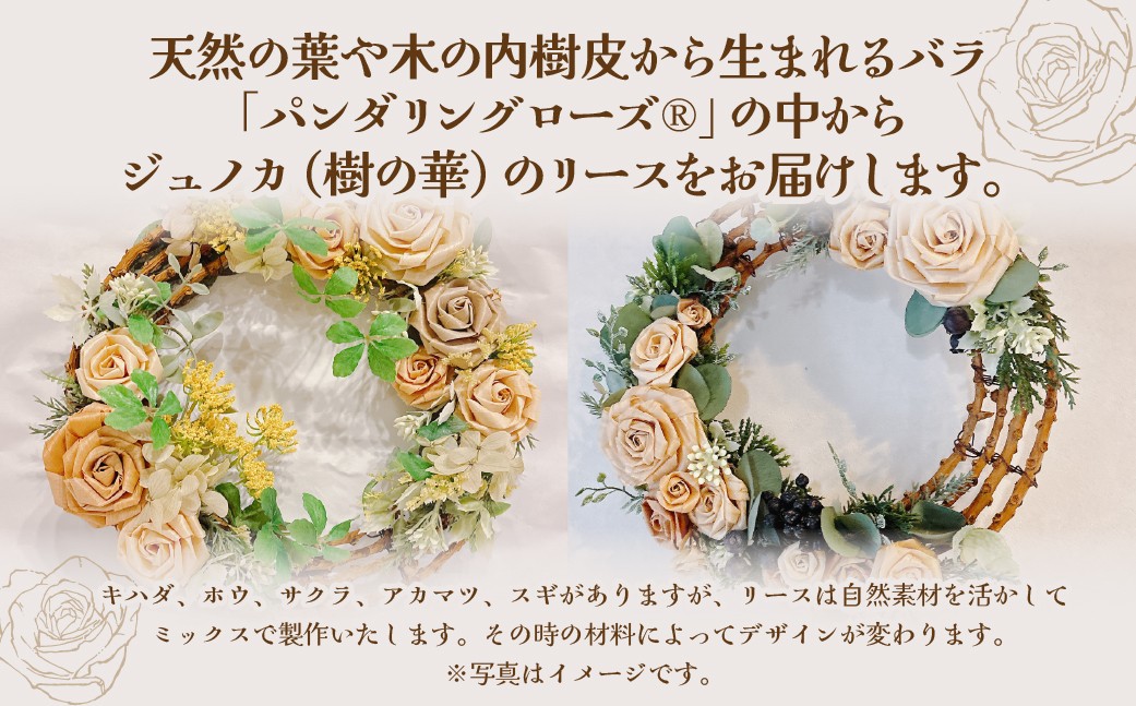 の中からジュノカ(樹の華)のリースをお届けします。樹種はシナ、